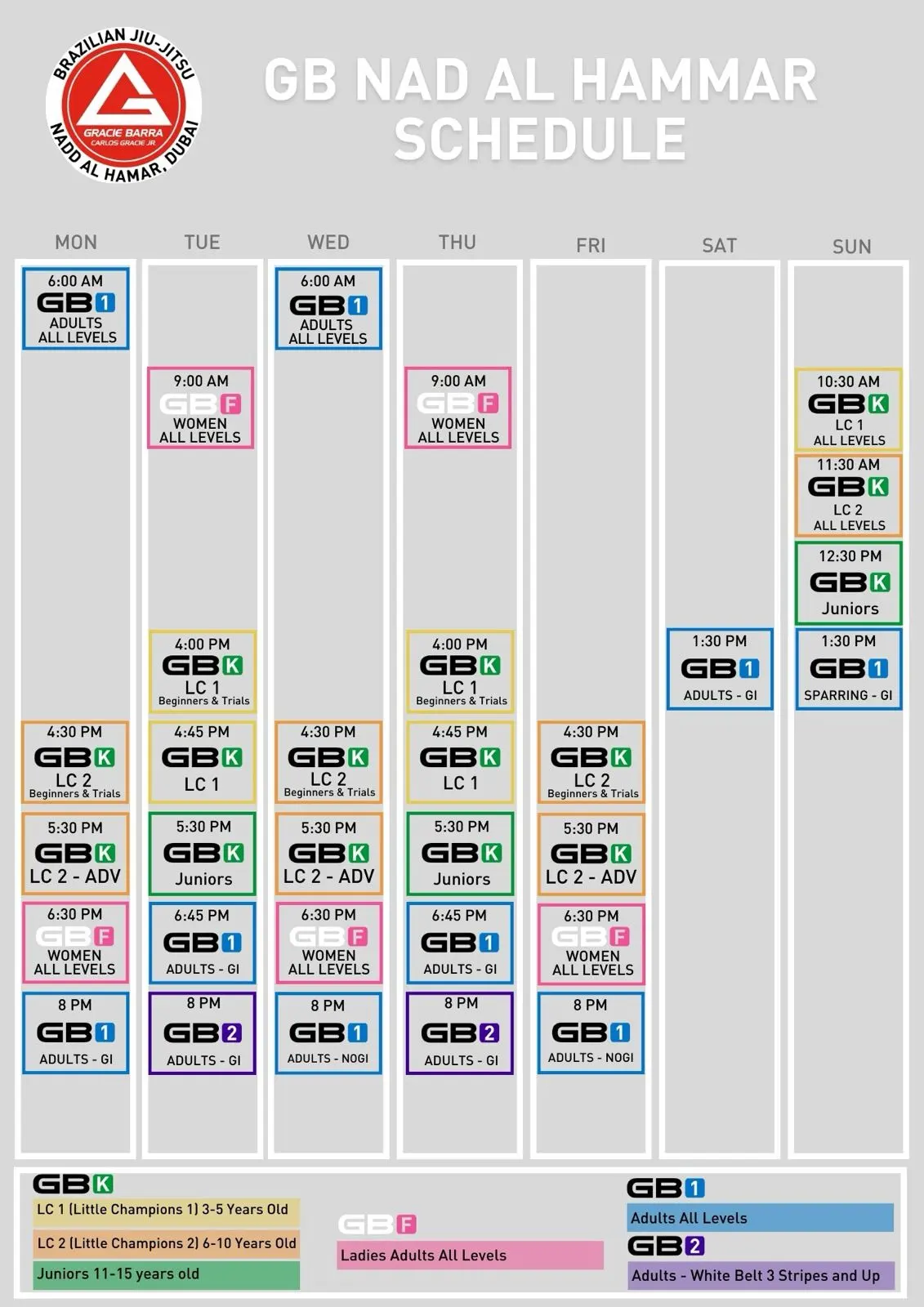 At Gracie Barra Nadd Al Hamar, we offer a full range of classes for kids, teens, and adults — from beginners taking their first steps on the mat to advanced students refining their techniques. Our structured curriculum ensures consistent progress, safety, and fun for everyone.